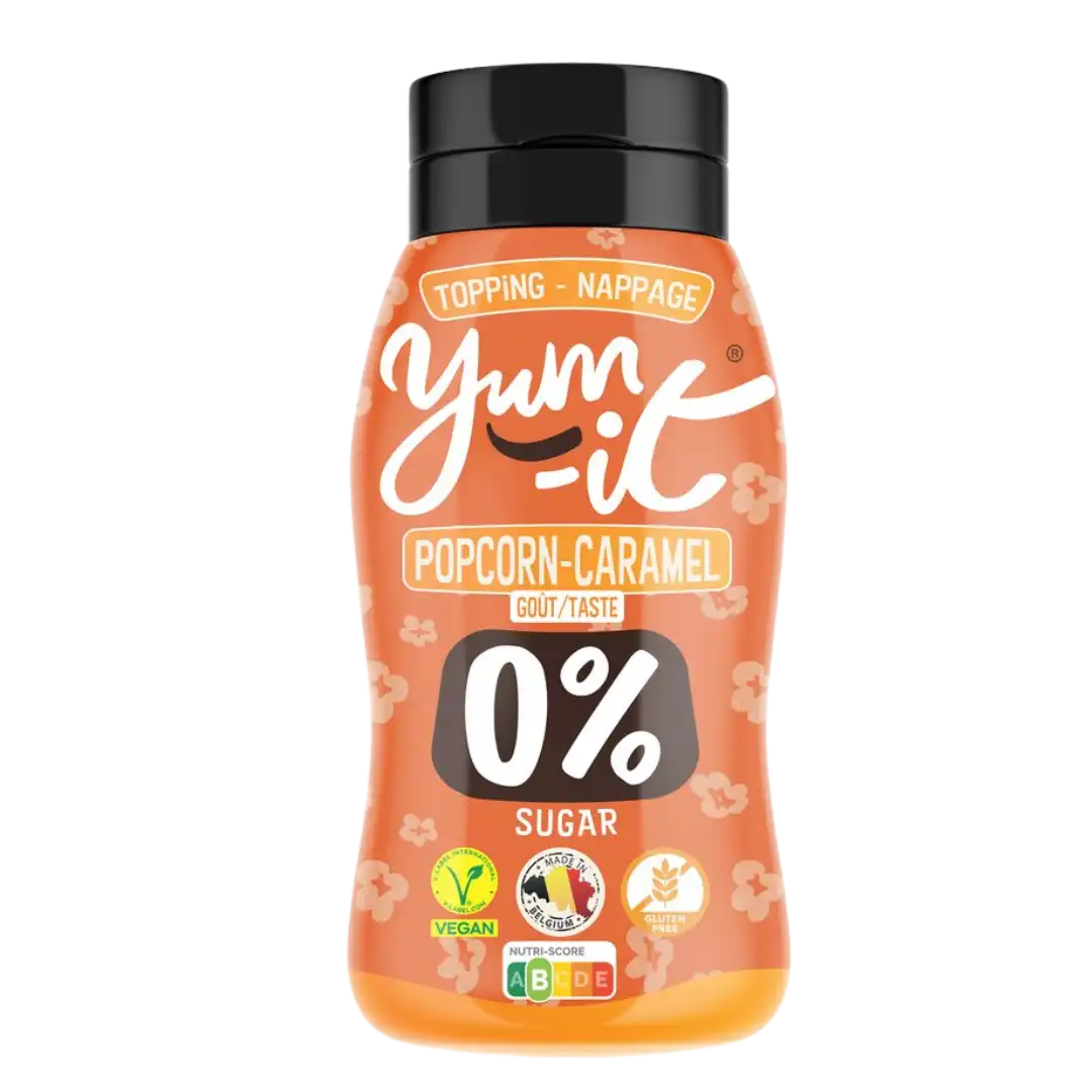 Das Yum-it Popcorn Caramel Topping bietet den reichhaltigen, süßen Geschmack von Karamell – ganz ohne Fett und ohne zugesetzten Zucker. Eine kalorienarme Alternative zu herkömmlichen Saucen, ideal für Frühstück, Desserts oder Snacks.
